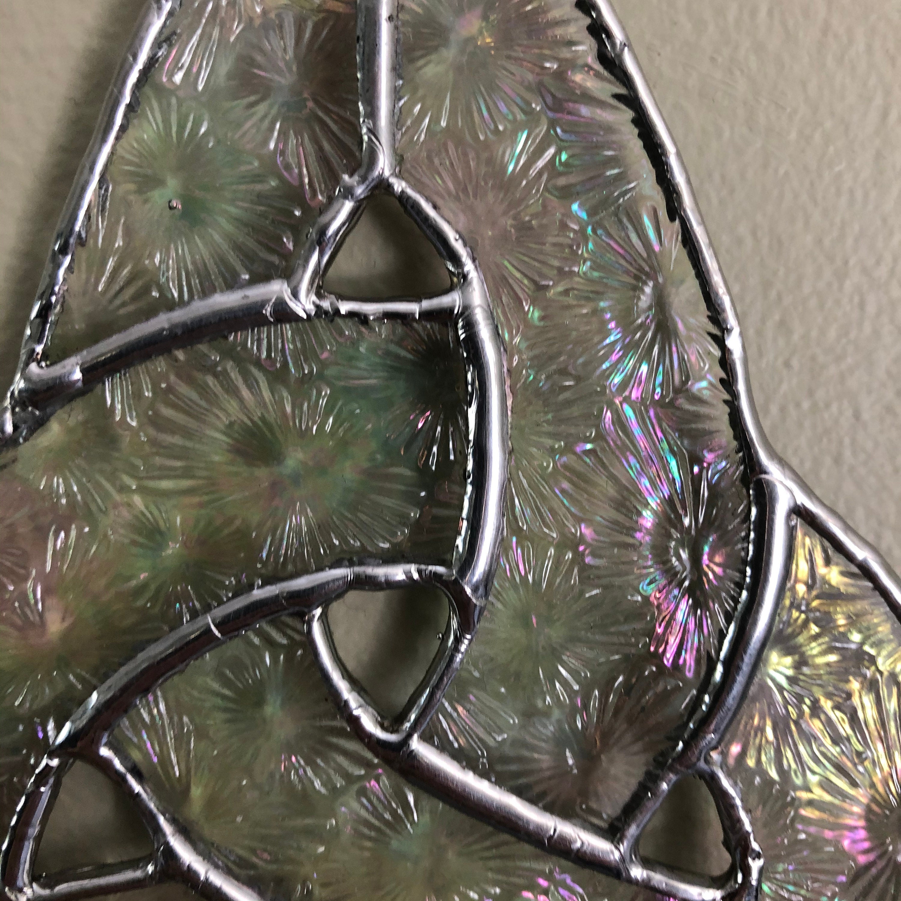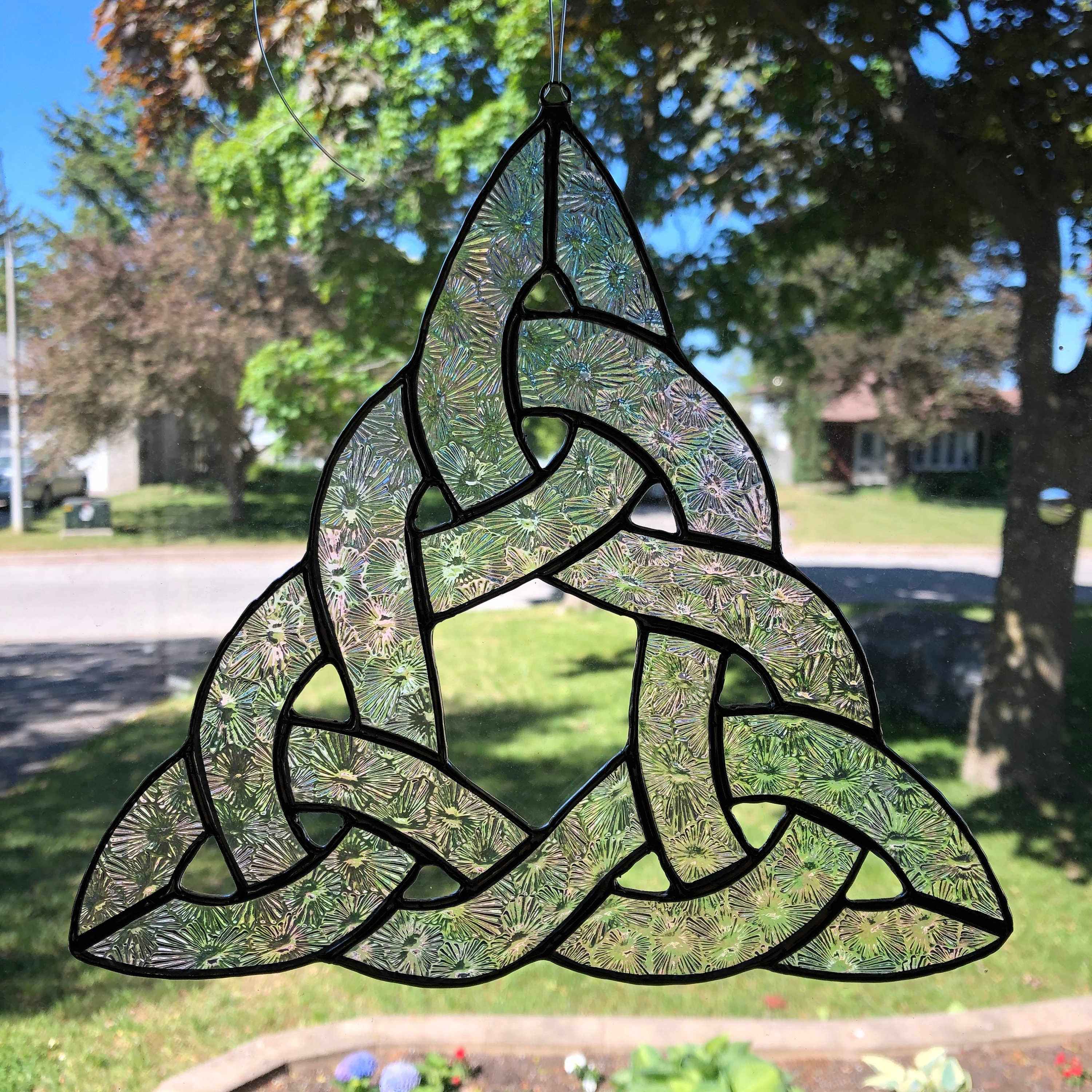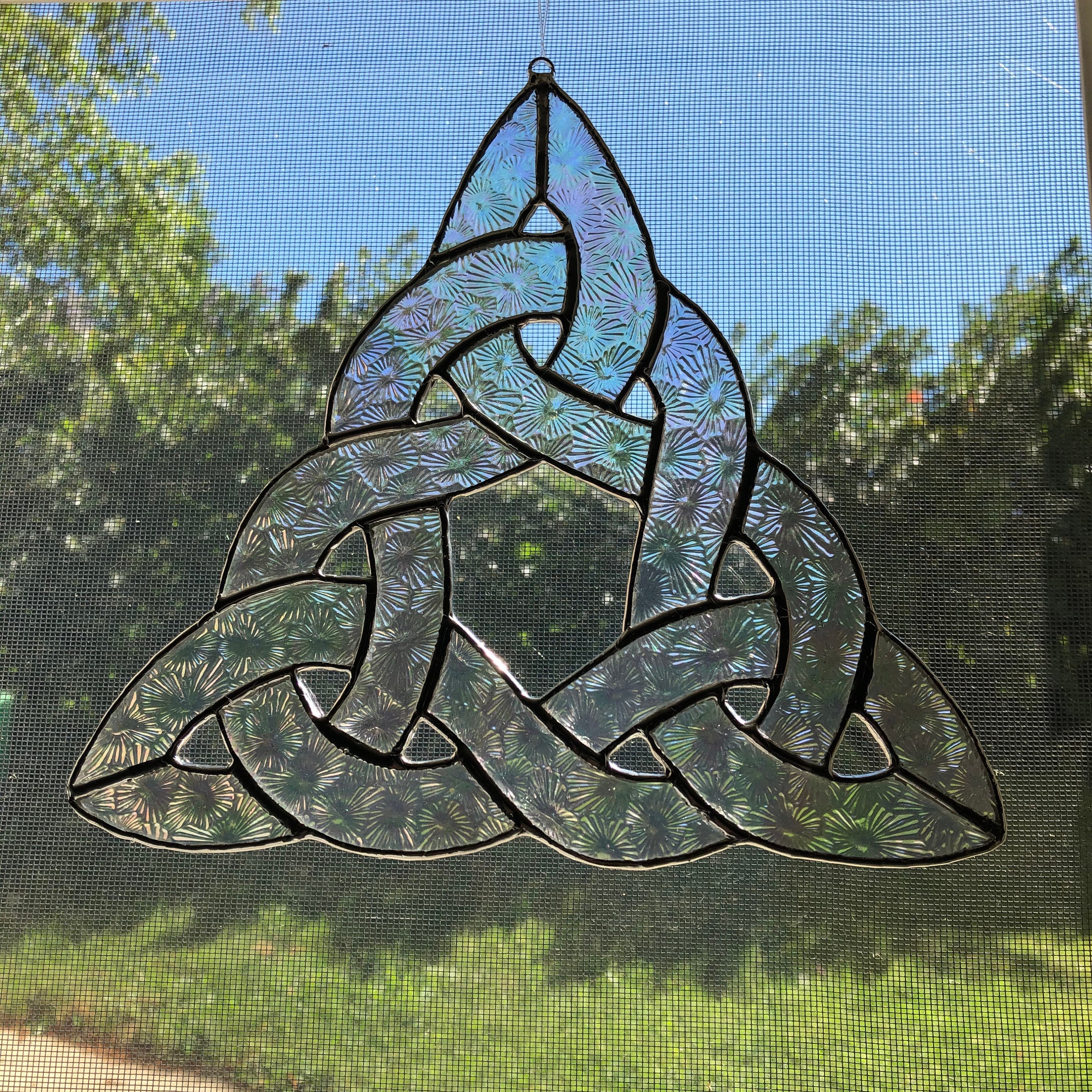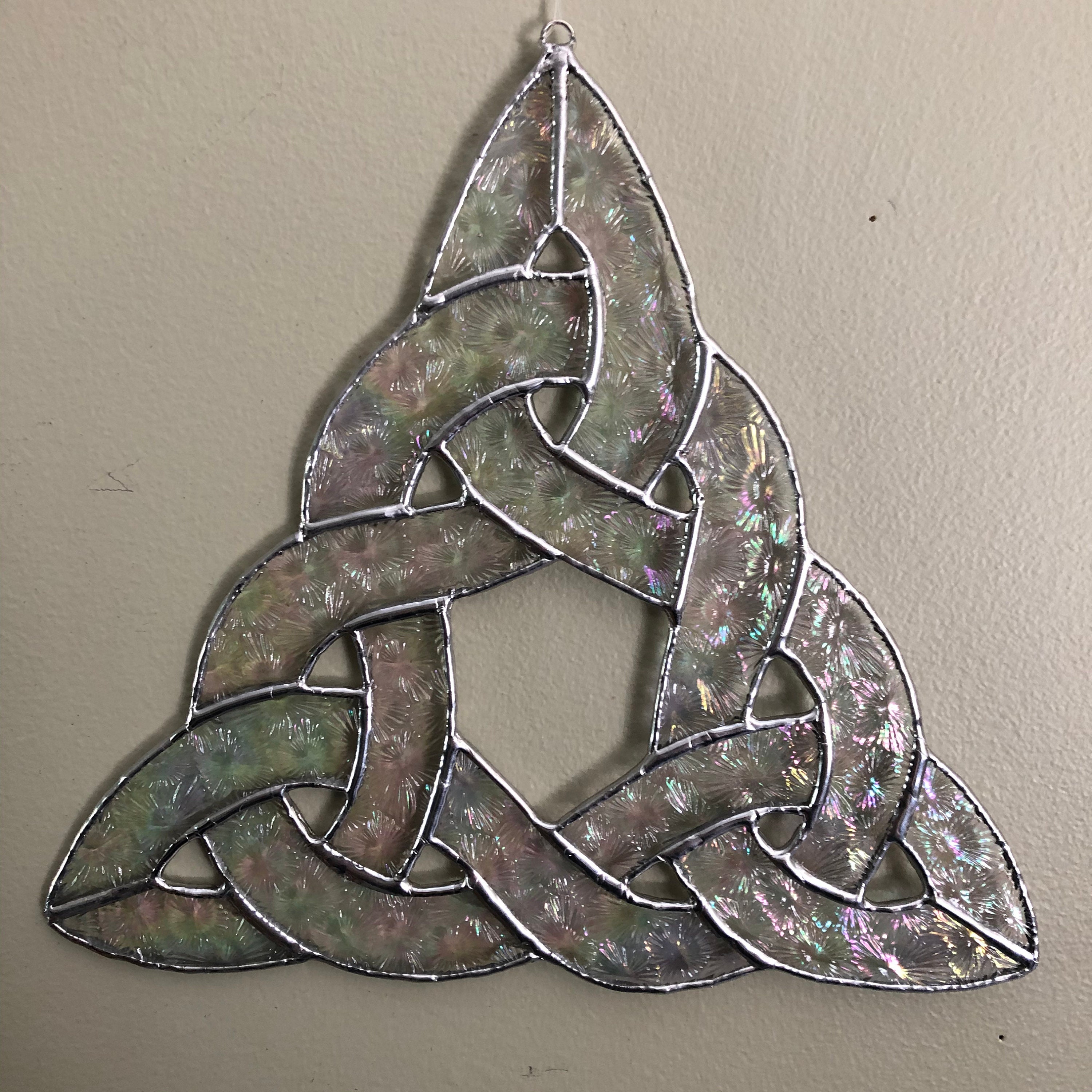 Celtic Knot in Iridized and Textured Clear Stained Glass.