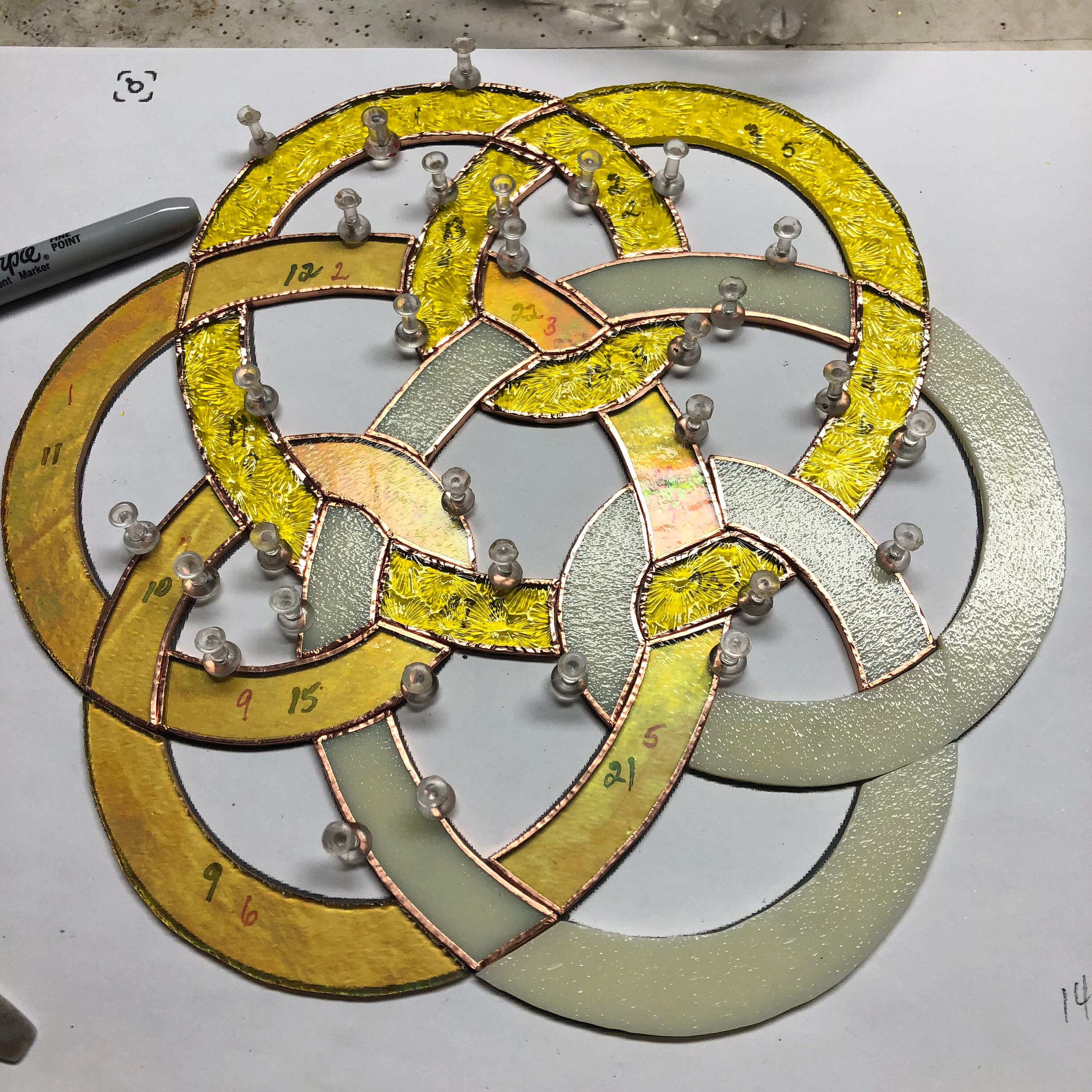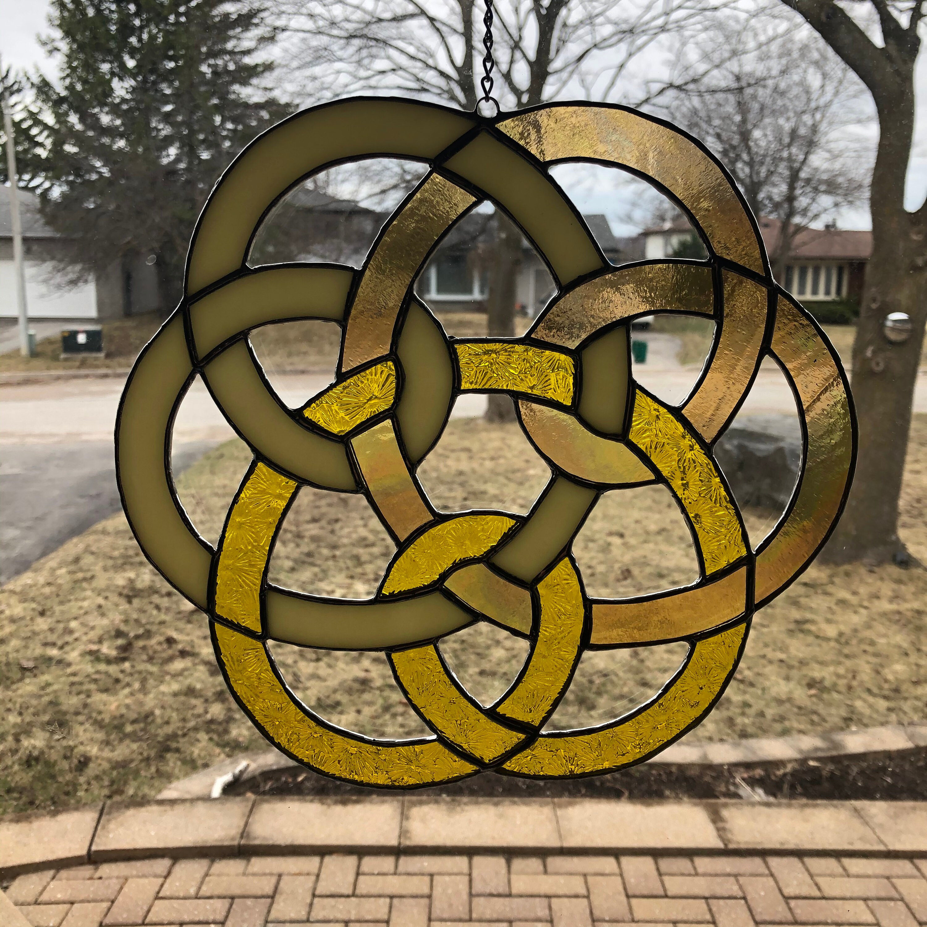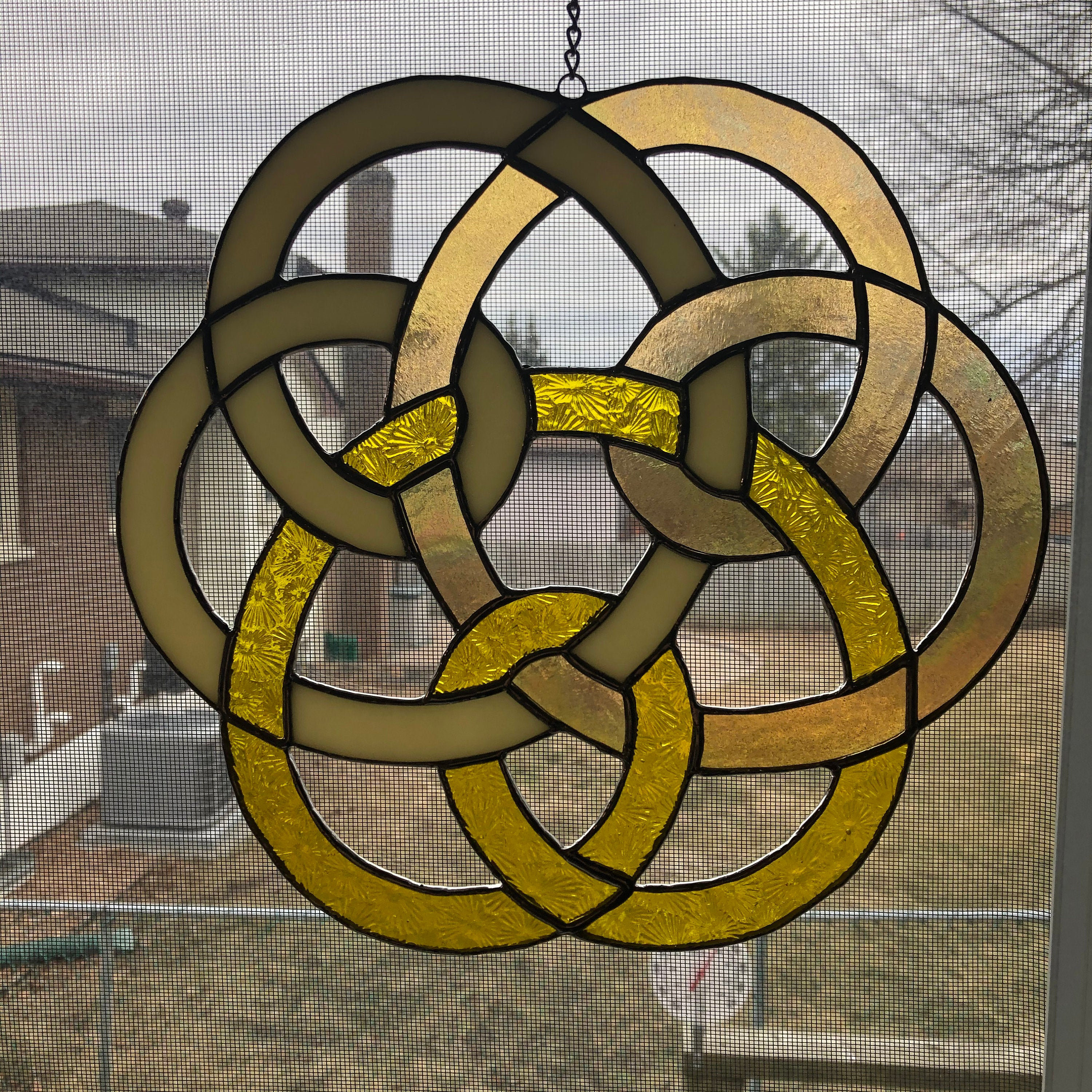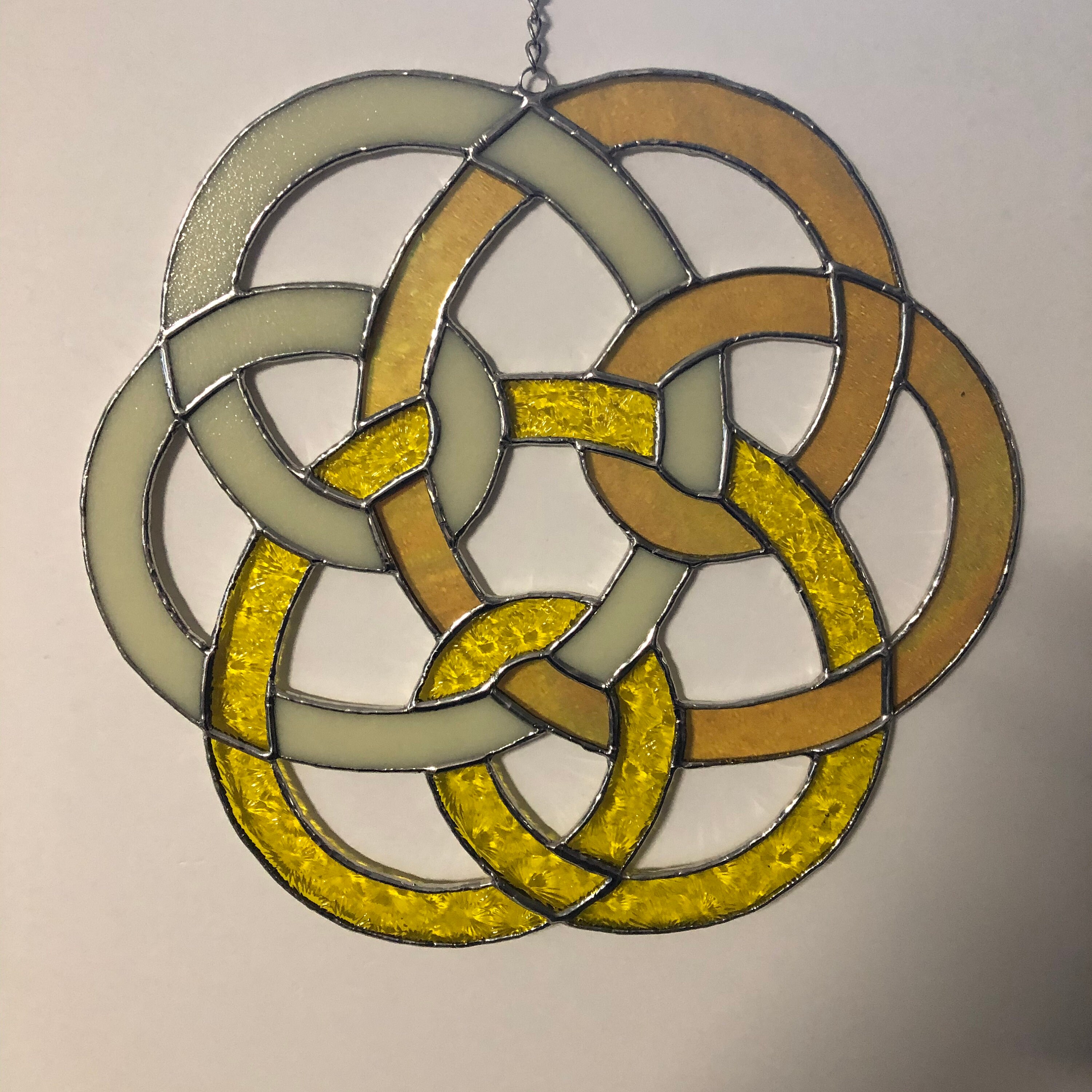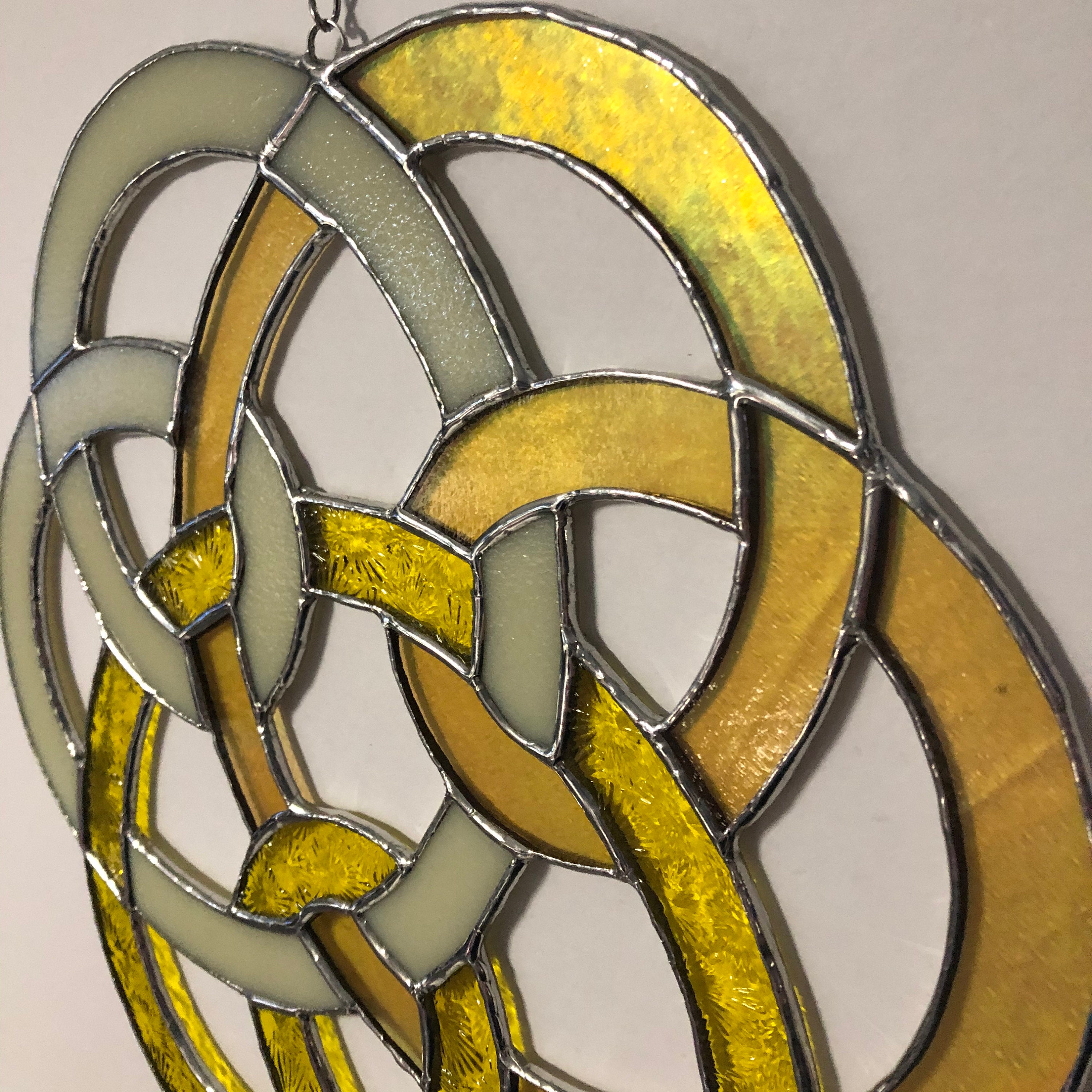 Stained Glass Celtic Triple Knot in Yellow & Iridescent Gold
